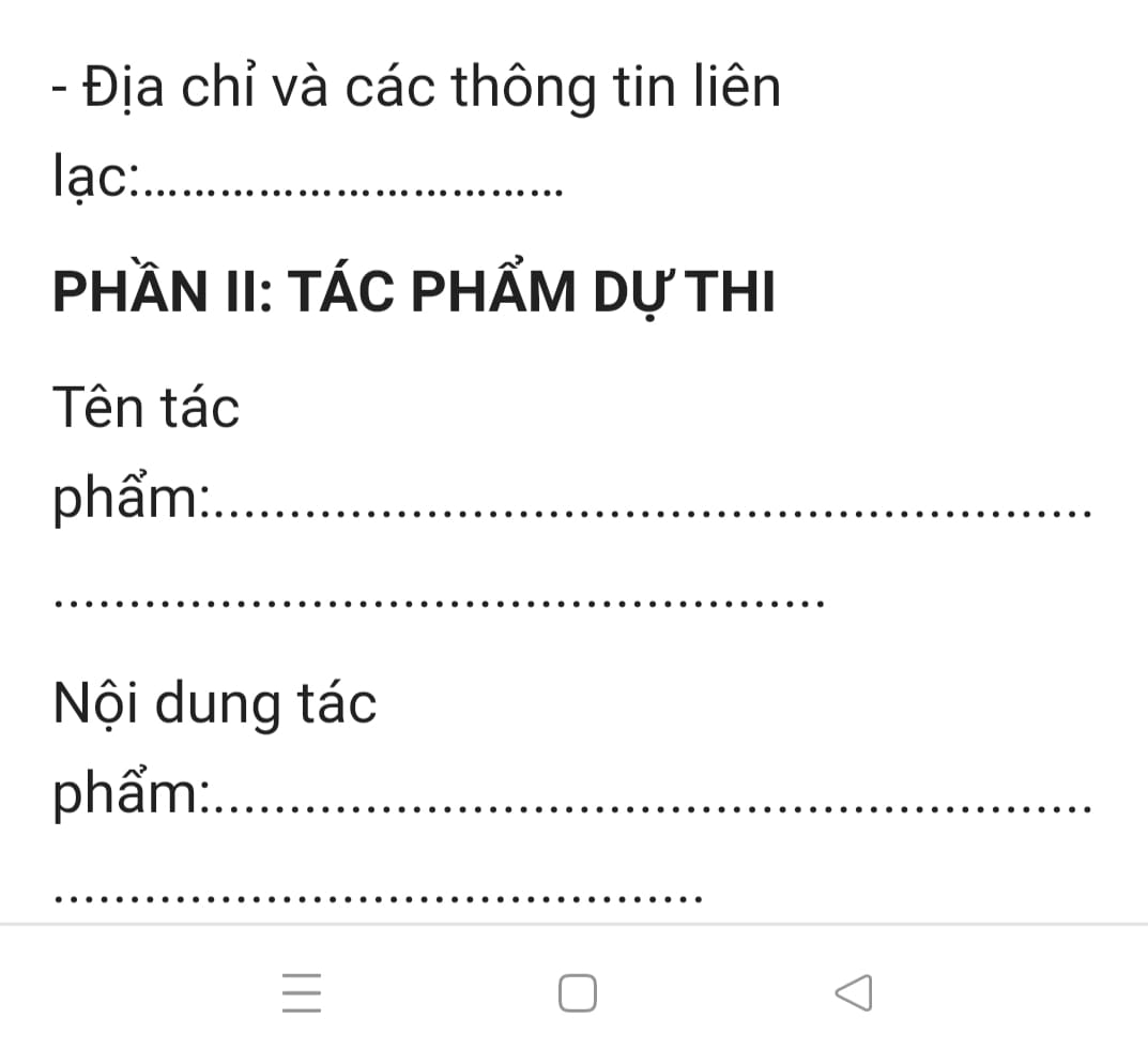 - Thông tin về tác giả và tác phẩm dự thi ghi rõ trên trang đầu tiên của tác phẩm dự thi để Ban tổ chức làm phách khi chấm (mẫu bài dự thi đính kèm).