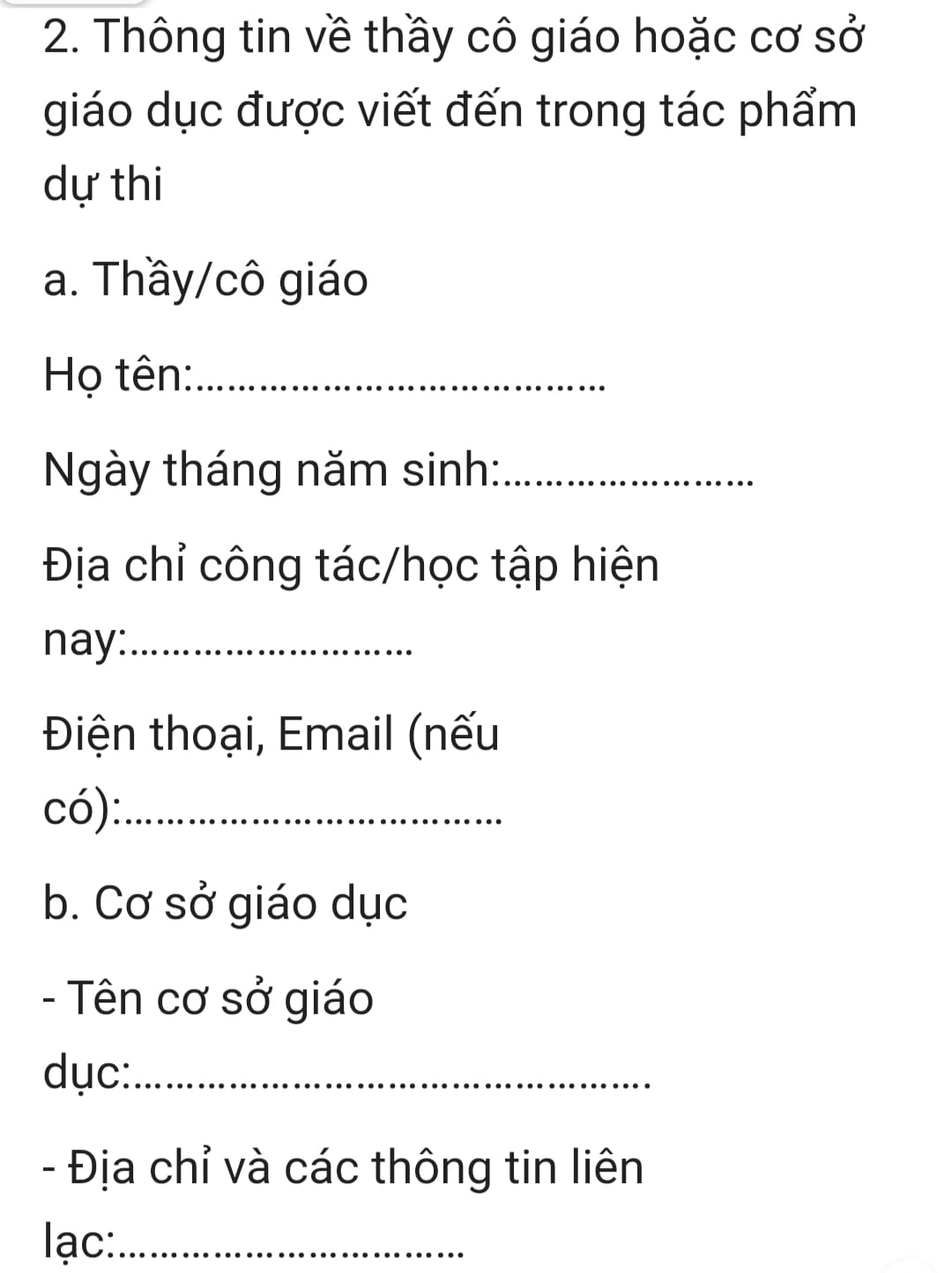 - Các tác phẩm dự thi có thể viết tay hoặc đánh máy, trình bày rõ ràng trên mặt khổ giấy A4, cỡ chữ 14, front chữ Times NewRoman.