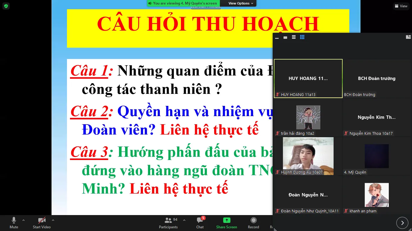 - Tích cực tham gia các hoạt động xã hội, trước hết là tích cực tham gia các hoạt động do Đoàn tổ chức, phấn đấu để trở thành người Thanh niên, Thiếu niên gương mẫu về mọi mặt và làm nòng cốt trong các phong trào đoàn thanh niên.